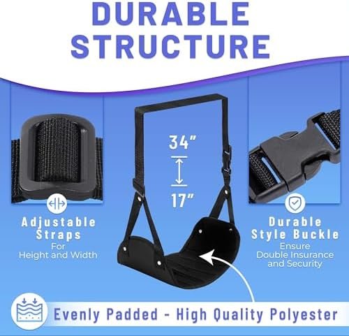 Your New Favorite Travel Accessory – Your new leg rest for airplane travel will arrive in a convenient travel bag. Each foot hammock under desk is evenly-padded for ultimate comfort. The extra-long adjusts from 17″to 34” and has a depth of 9” with an 18” width. You’ll have plenty of space to relax. Plus, you can use your new foot hanger for plane travel on any flight without disturbing the person in front of or next to you! This is one of the best airplane travel accessories you’ll find.