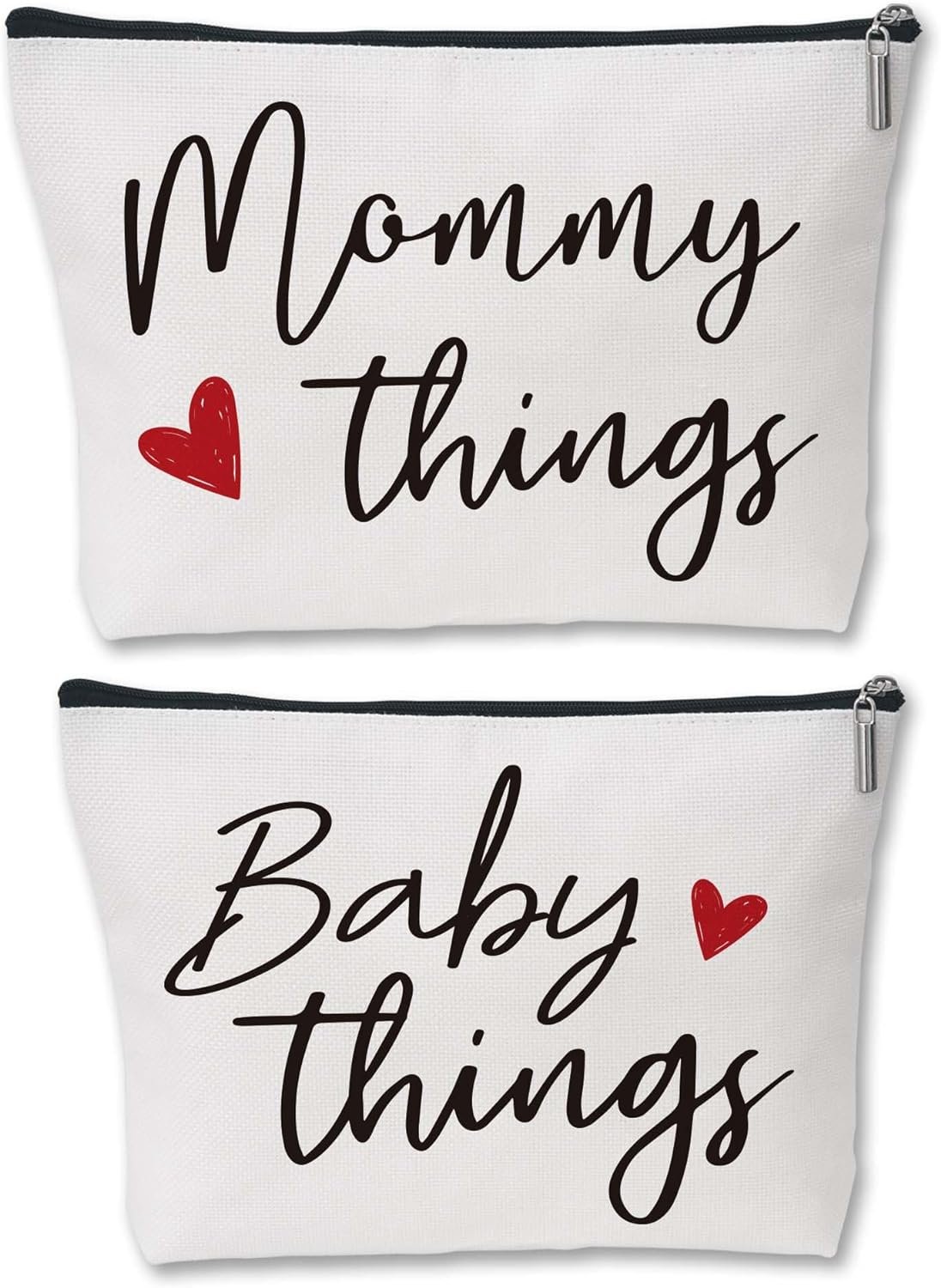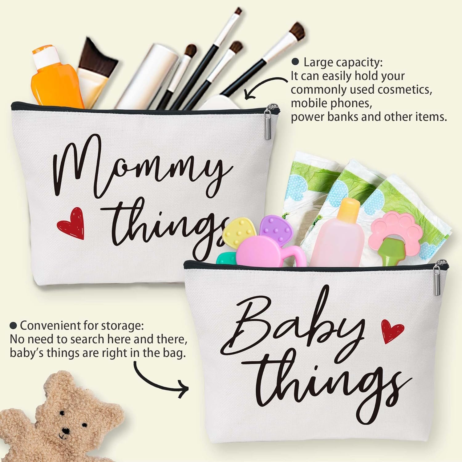 Mom has stuff, and the baby also has a lot of things. This lovely canvas set includes two zippered canvas bags. The white bags each have their own labels: One canvas bag is printed with “mommy things”, and the other canvas bag is printed with “baby things”. You will never mix up your stuff with the baby’s stuff anymore! Mom’s canvas bag is very suitable for your cosmetics, mobile phones, mobile power supplies, and other items or other mom’s stuff that you will need all day. Happily put the baby’s extra socks, pacifiers, and other things in their own bags. The bag is of moderate size and can be placed in your diaper bag or other handbags. It’s great to carry it wherever you go. You will become very organized; you no longer need to spend a few minutes digging at the bottom of your bag to find your keys! If the bag is a little dirty because of a day of “being a mom” work, don’t worry! Just wash it manually with warm water and soap. Don’t forget to add it to your baby registry. This is the perfect gift to open on your baby shower day and use when the little baby arrives. Become a trendy mom on the block and have this canvas bag set. Product dimensions: 9.5 inches wide × 7 inches high × 1.7 inches deep, please use warm water below 40 degrees and soap to wash manually.