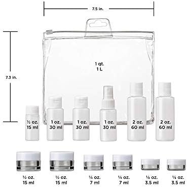 Travel Bottles for All Your Needs: From a spray bottle to cream jars, this set comes with travel size bottles in a variety of shapes and sizes that can hold and seal your toiletries for international flights
