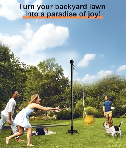 Durable & Serviceable: Heavy-duty steel with black lacquer spraying ensure this tether balls and rope set with pole rust-proof and wear-proof, no fear of sunshine of rains. Our tetherball game set is an ideal outdoor play activity, such as in the backyard, at the park, at the beach, an outdoor party, a school sports day, pet exercise or family fun and so on.
