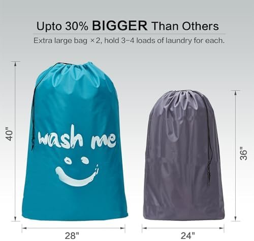 ULTRA LARGE CAPACITY – Sized 28 x 40 inches. This size is big enough for holding 3~4 loads of laundry for each, making it ideal for travel storage in college dorms or for family use