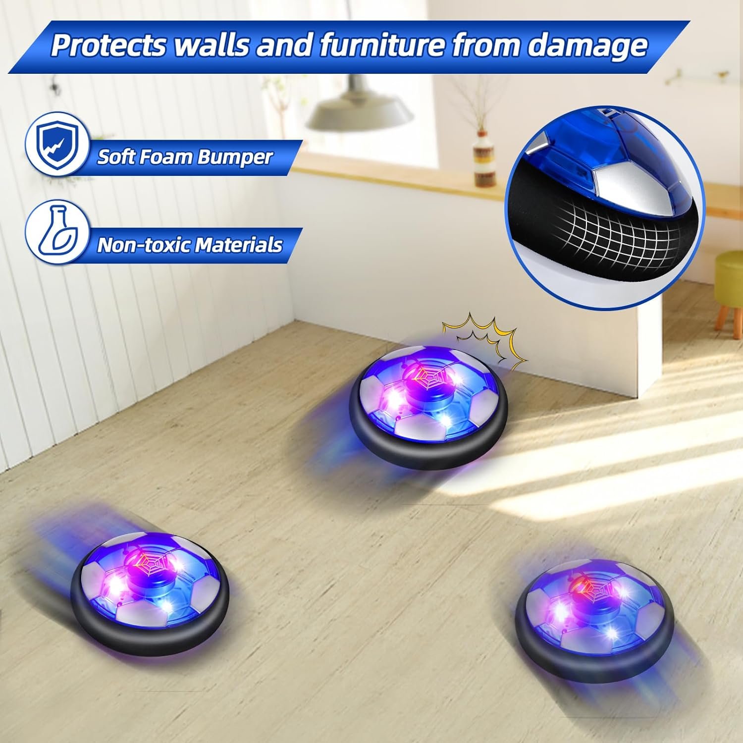 Safe & Durable: Made of high quality ABS material. No sharp corners. The hover soccer and hockey ball is equipped with EVA soft bumper foam to prevents damage to furniture and walls. Safe for both kids and toddlers to play with!