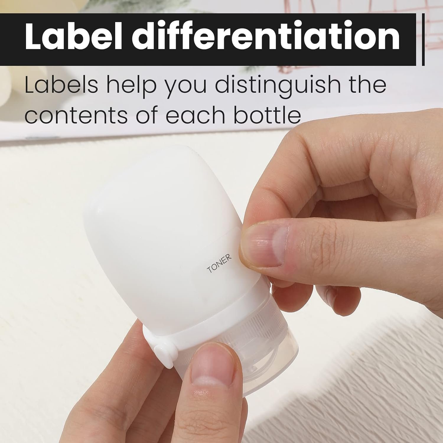 1oz TSA Approved Bottles: The mini bottle is light and portable. Perfect size for your coat pocket. The bottles come with labels for identify the products