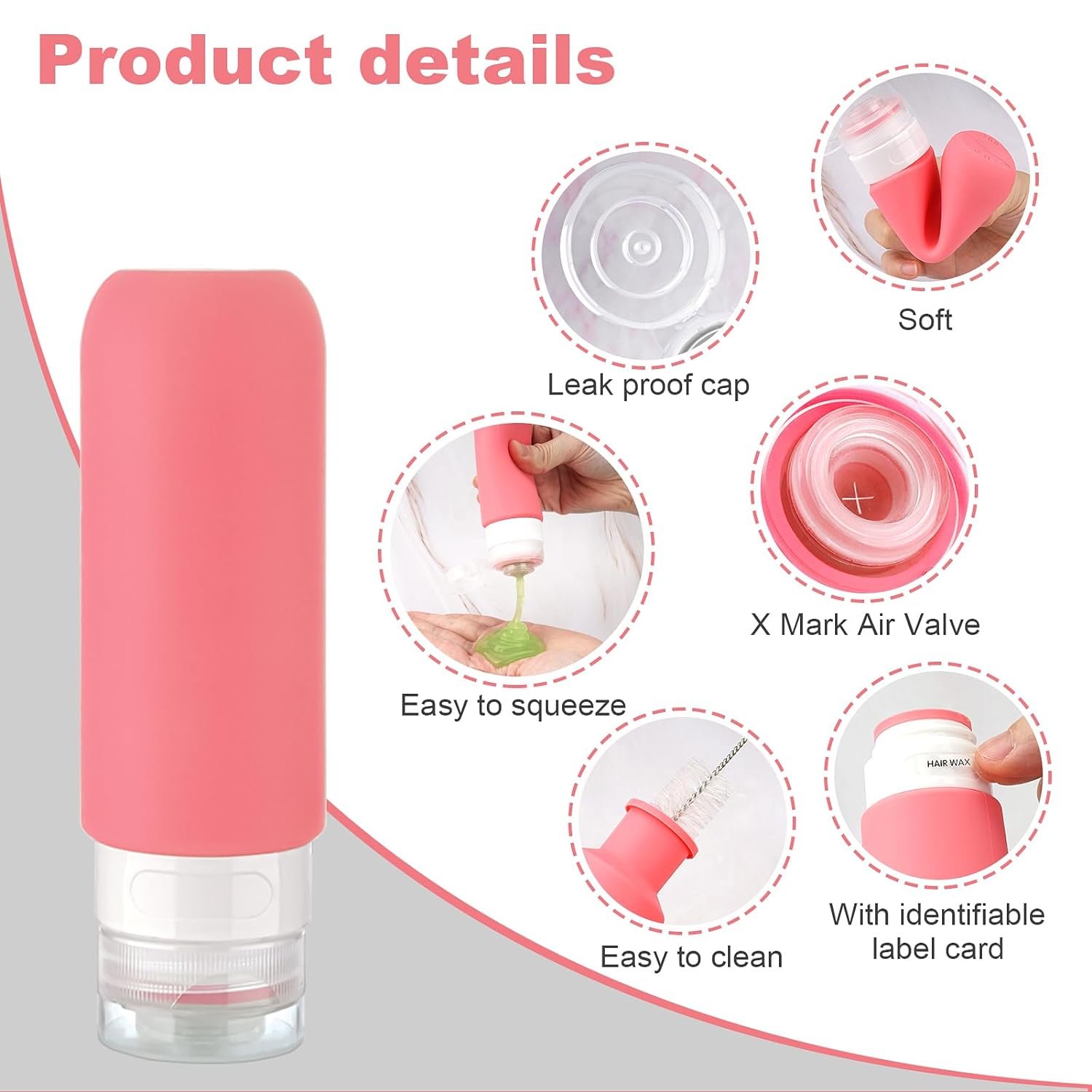 【Enhanced Thickness & Resilience】Experience the unbeatable bounce-back of our silicone travel bottles, crafted with reinforced thickness. Travel toiletry bottles withstand pressure, always bouncing back to their original form, ensuring enduring performance. if you have any problem with our travel toiletry bottles, pls let us know, and we will do our best to meet your satisfaction.