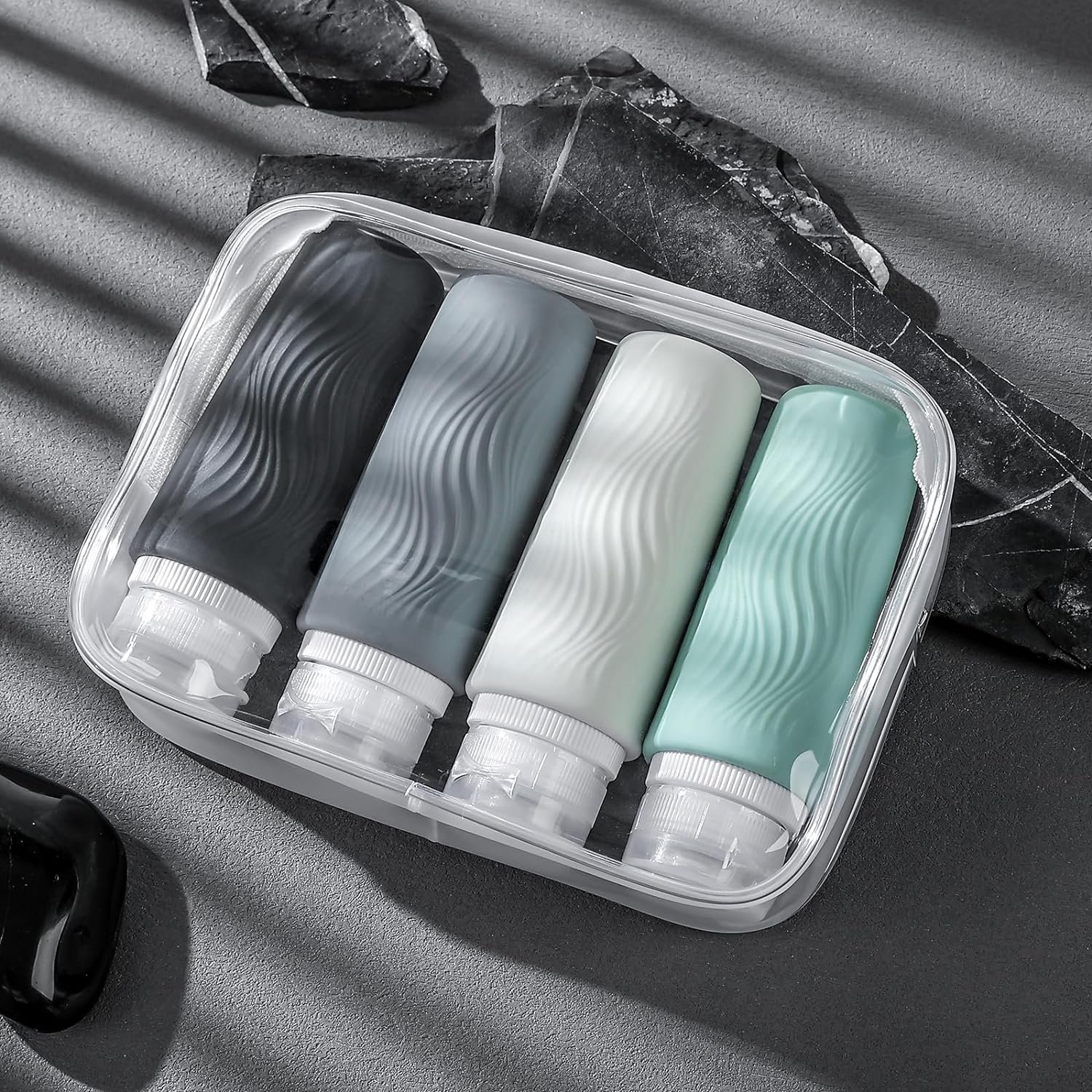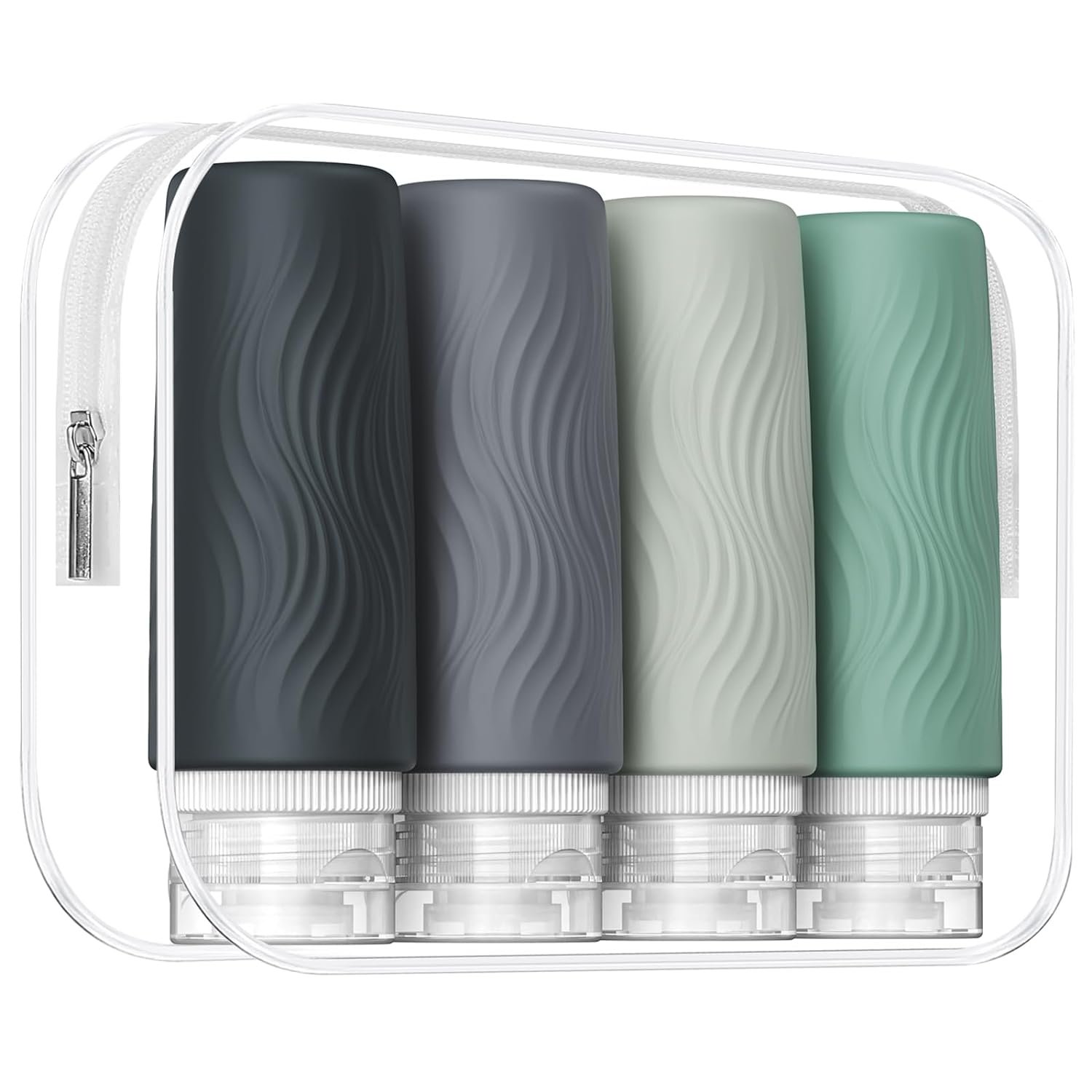 TSA carry on approval: 4 pack 3oz silicone travel bottles, very suitable for shampoo, conditioner, shower gel, lotion, hand sanitizer and shower gel. It is equipped with a high-quality zipper transparent wash bag, which saves space and allows you to travel long distance freely like a professional.