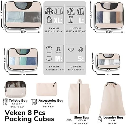 High-Quality Materials: Our packing cubes are designed with twill polyester fabric, an sturdy fabric that guarantees lasting durability. Veken offers high-quality packing cubes with precise stitching and smooth durable zippers that will withstand your everyday needs.